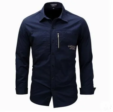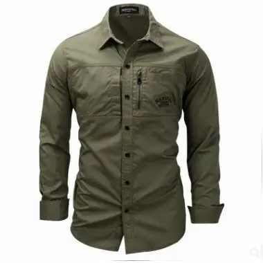 Best New European Size Mens Large Size Casual Long Sleeves Lapel Shirts Cotton Military Blouses Camisa M