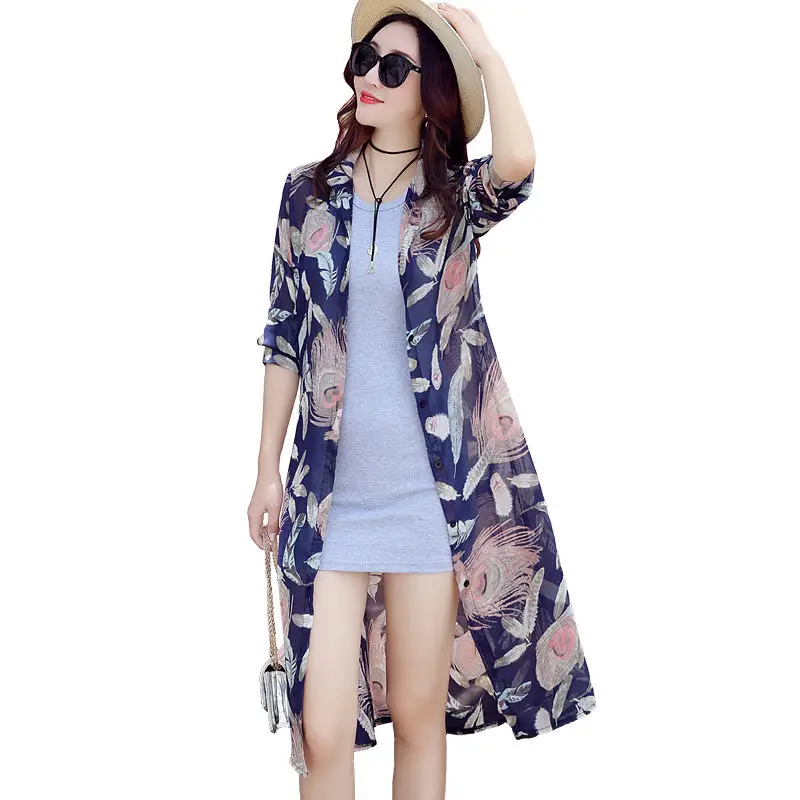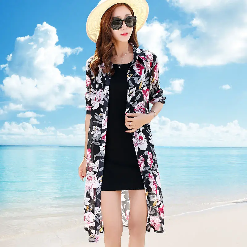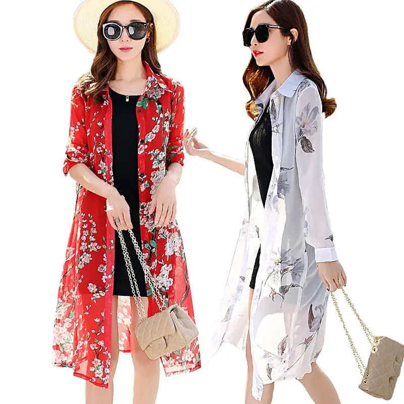 discounted Summer Beach Shirt Blouse Women Chiffon Cardigan Long Sleeve Women Blouses Plus Size 3XL Sunscreen