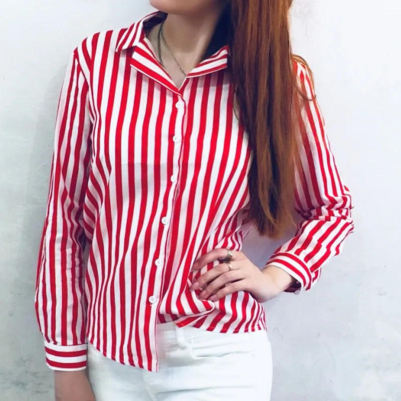 New nvyou gou Women Stripe Long Sleeve Chiffon Button Down Blouse Shirt Office Lady Casual Summer Autum