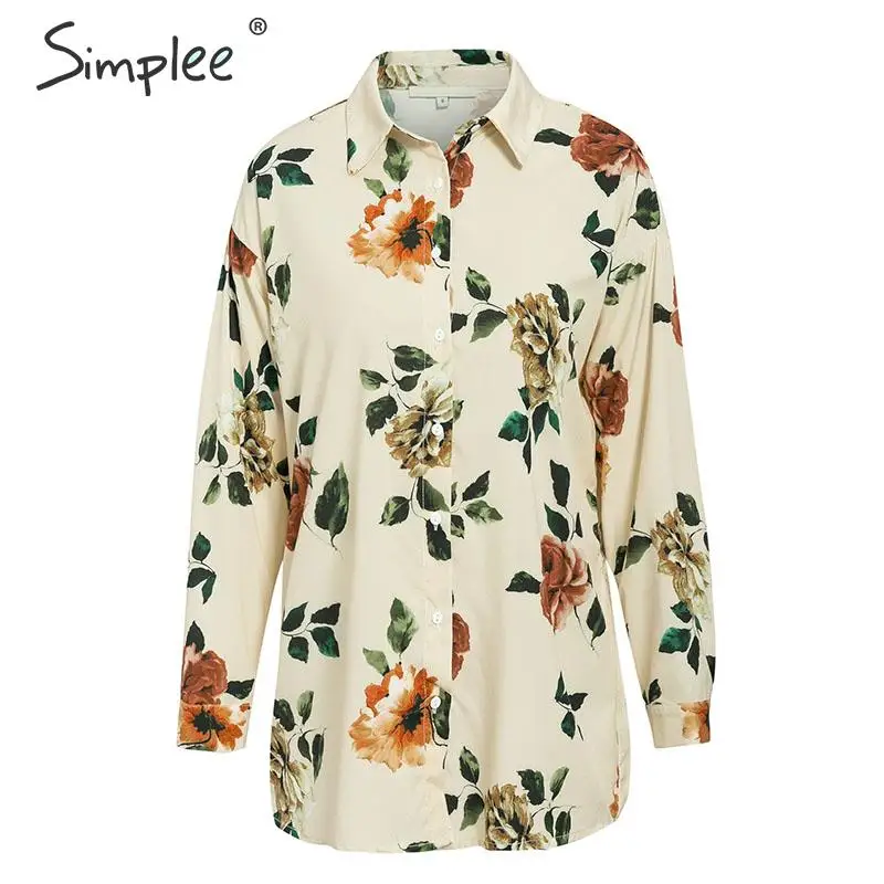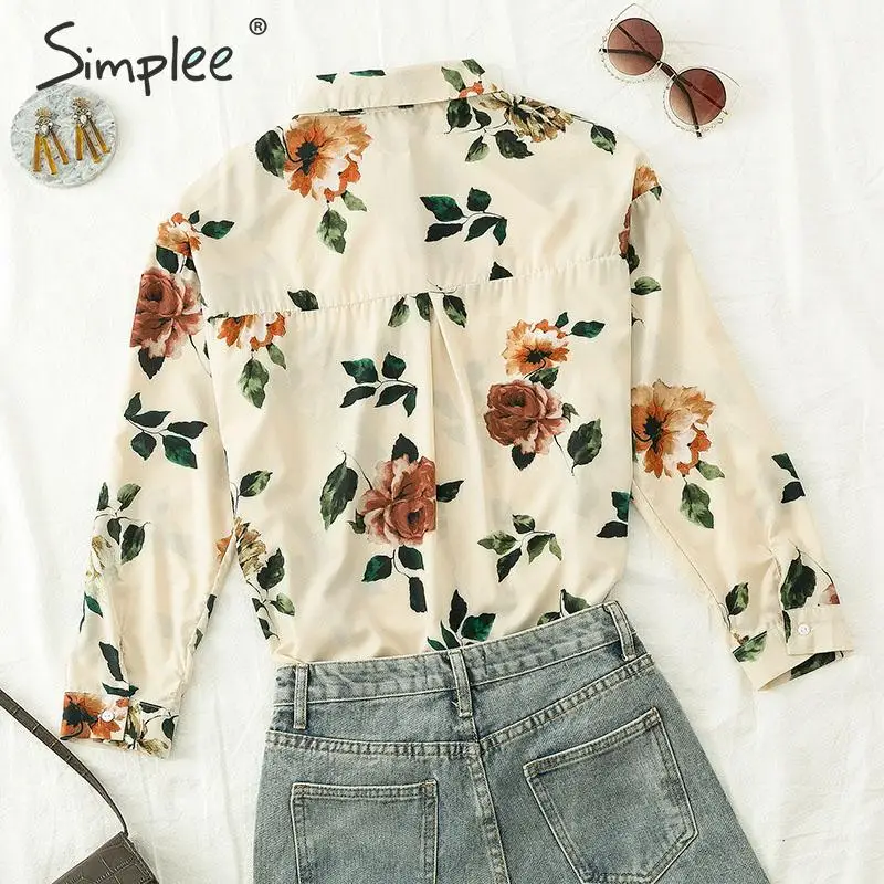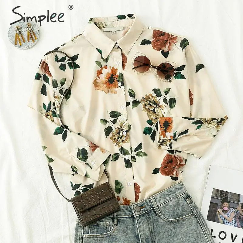 price reduction Simplee Casual long sleeve button lapel blouse women Elegant office female flower blouse 2019 Autum