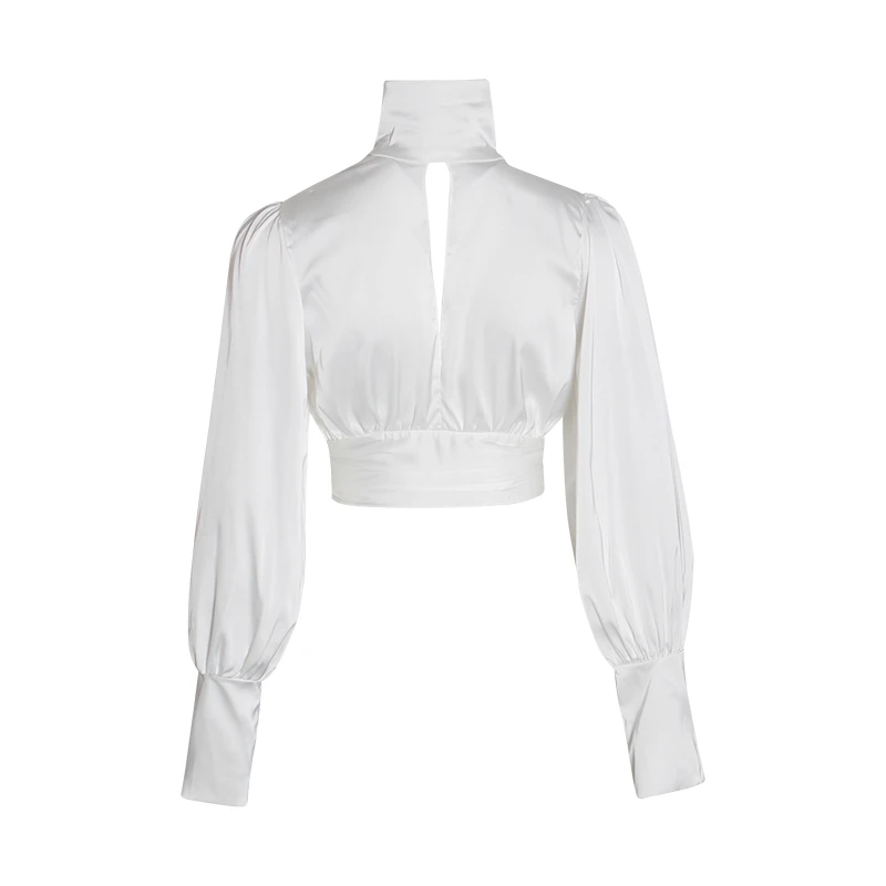 Very best TWOTWINSTYLE Backless Women's Shirts Turtleneck Lantern Long Sleeve Bowknot Sexy Party Blouse Femal